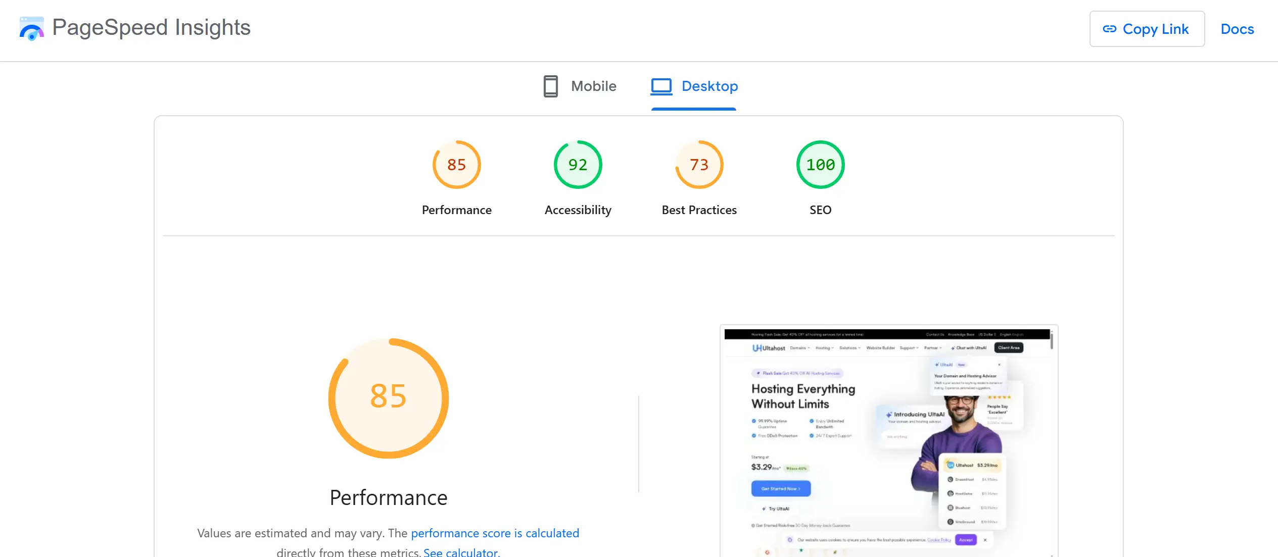We conducted a performance test using Google PageSpeed Insights, and the results shown in the image reflect the performance of the hosting service.