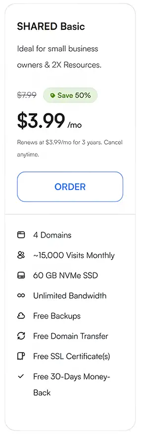 The Shared Basic plan is suitable for small business owners who need more resources and want to host multiple websites.